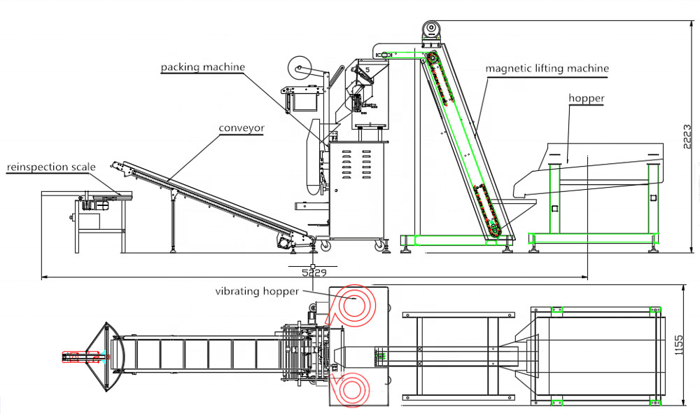 De plastic zakverpakkingsmachine kan ook een composiet verpakkingslijn vormen met kartonverpakking: